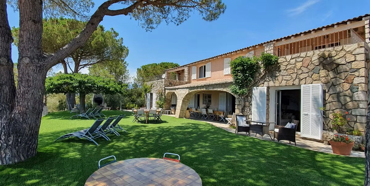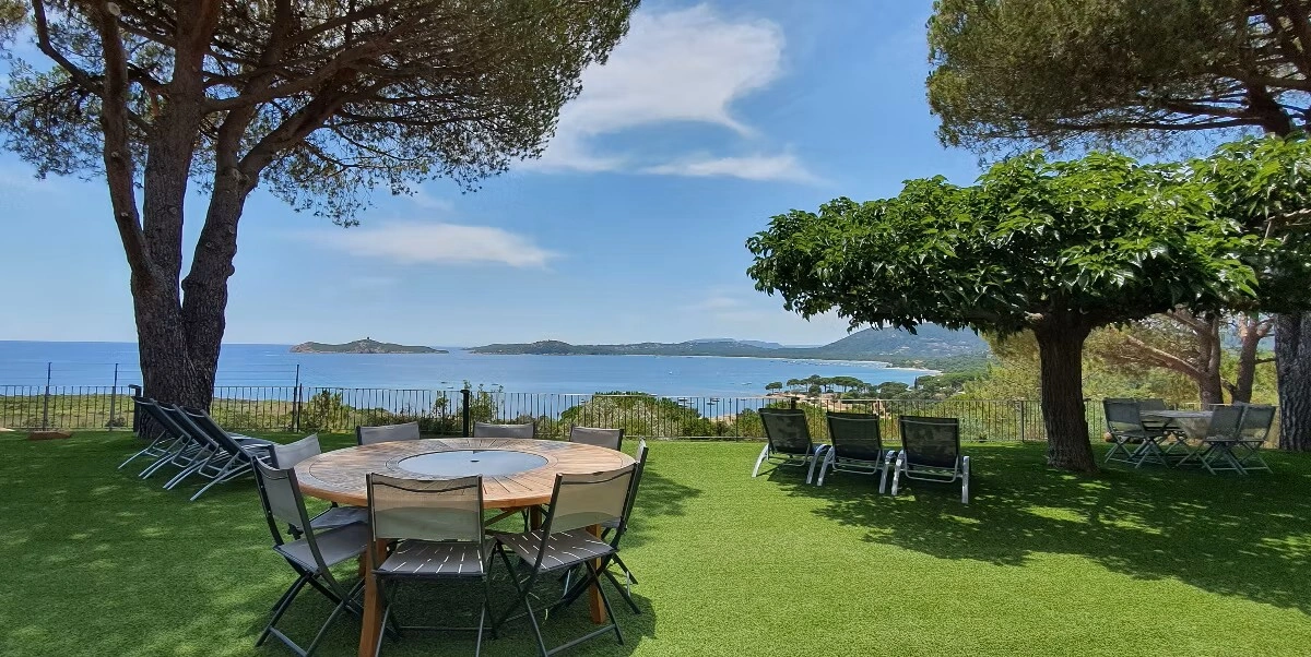 Propriété d’exception offrant une vue mer panoramique à 180° sur la baie de Pinarello, à seulement 250 mètres de la plage.
