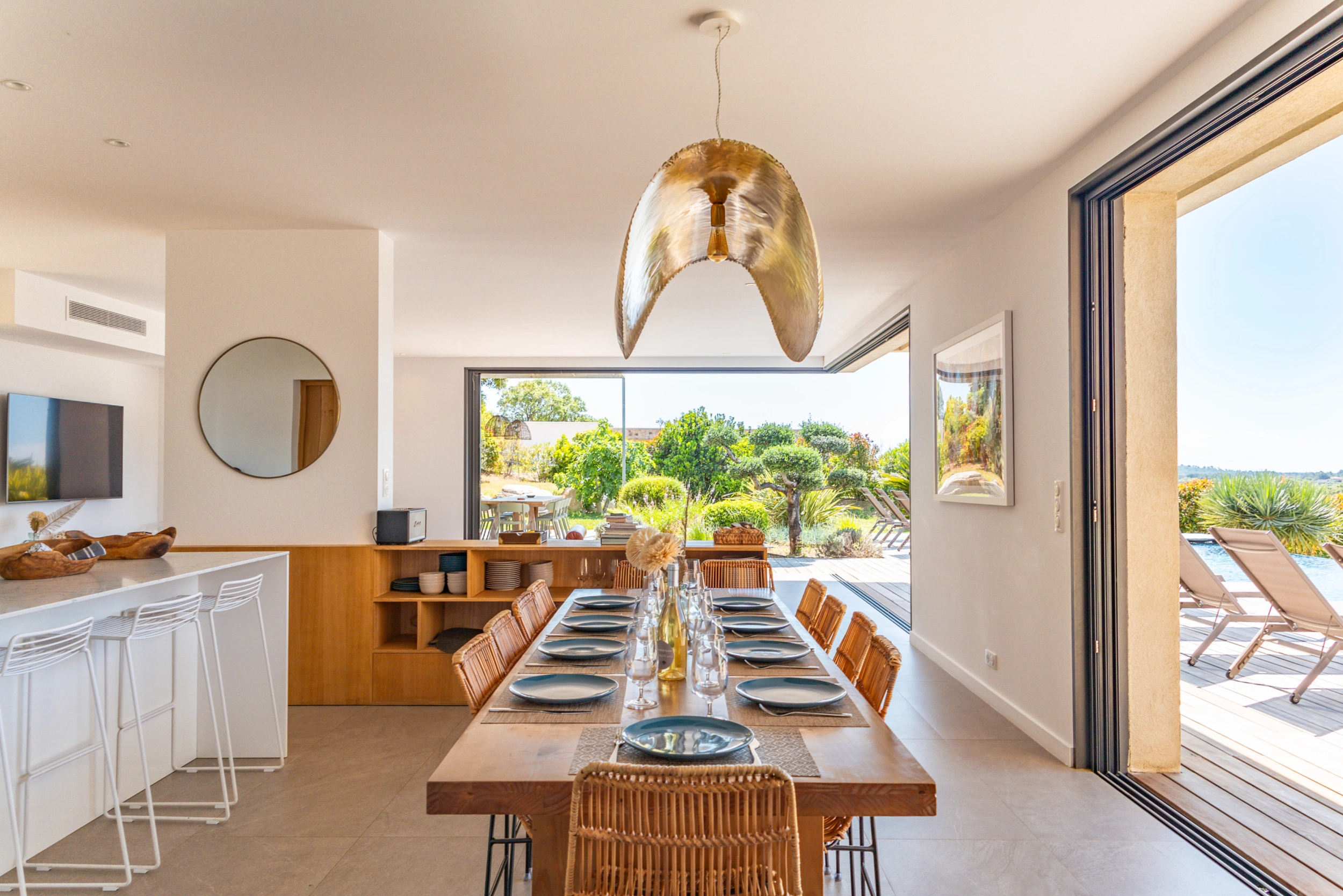 Cette propriété offre un équilibre parfait entre design contemporain et ambiance méditerranéenne, avec des matériaux de qualité et des finitions soignées.